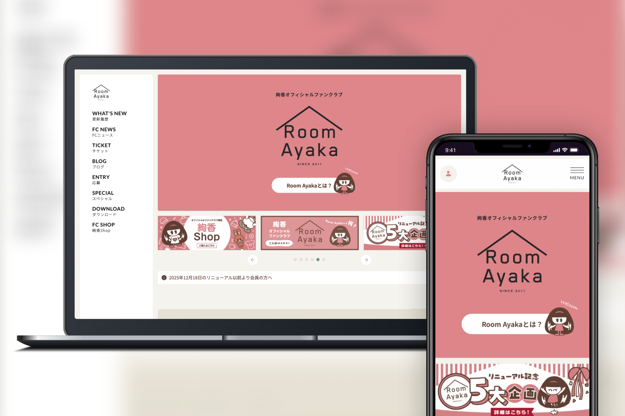 クリエイターとファンをつなぐプラットフォームを創造する株式会社SKIYAKI(本社:東京都渋谷区、代表取締役:小久保知洋、以下「SKIYAKI」)は、2025年12月18日(木)に、絢香のオフィシャルファンクラブ「Room Ayaka」(URL:https://ayaka-fc.jp)をリニューアルオープンしました。